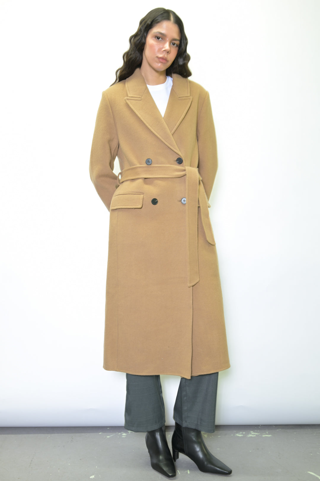 Indulge in timeless elegance with our 100% Merino Wool Coat. This heavyweight classic exudes sophistication and comes complete with a belt for versatile styling. The double-breasted design adds an extra layer of refinement, while the two pockets provide both style and convenience.What sets this coat apart is its full lining, ensuring comfort and warmth in every wear. Wrap yourself in luxurious fashion that effortlessly combines style and practicality. Elevate your winter wardrobe with this standout piece that promises both cozy comfort and chic allure.