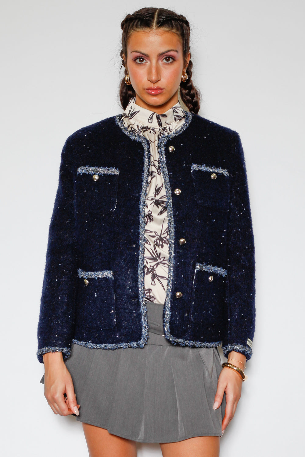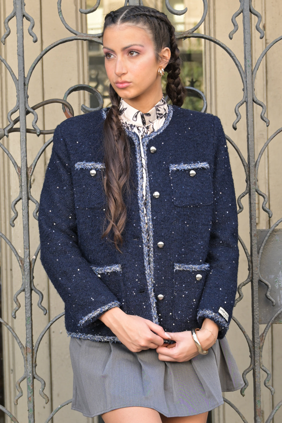 Cotton Black Qipao Ribbed Sweater with Gold Knot