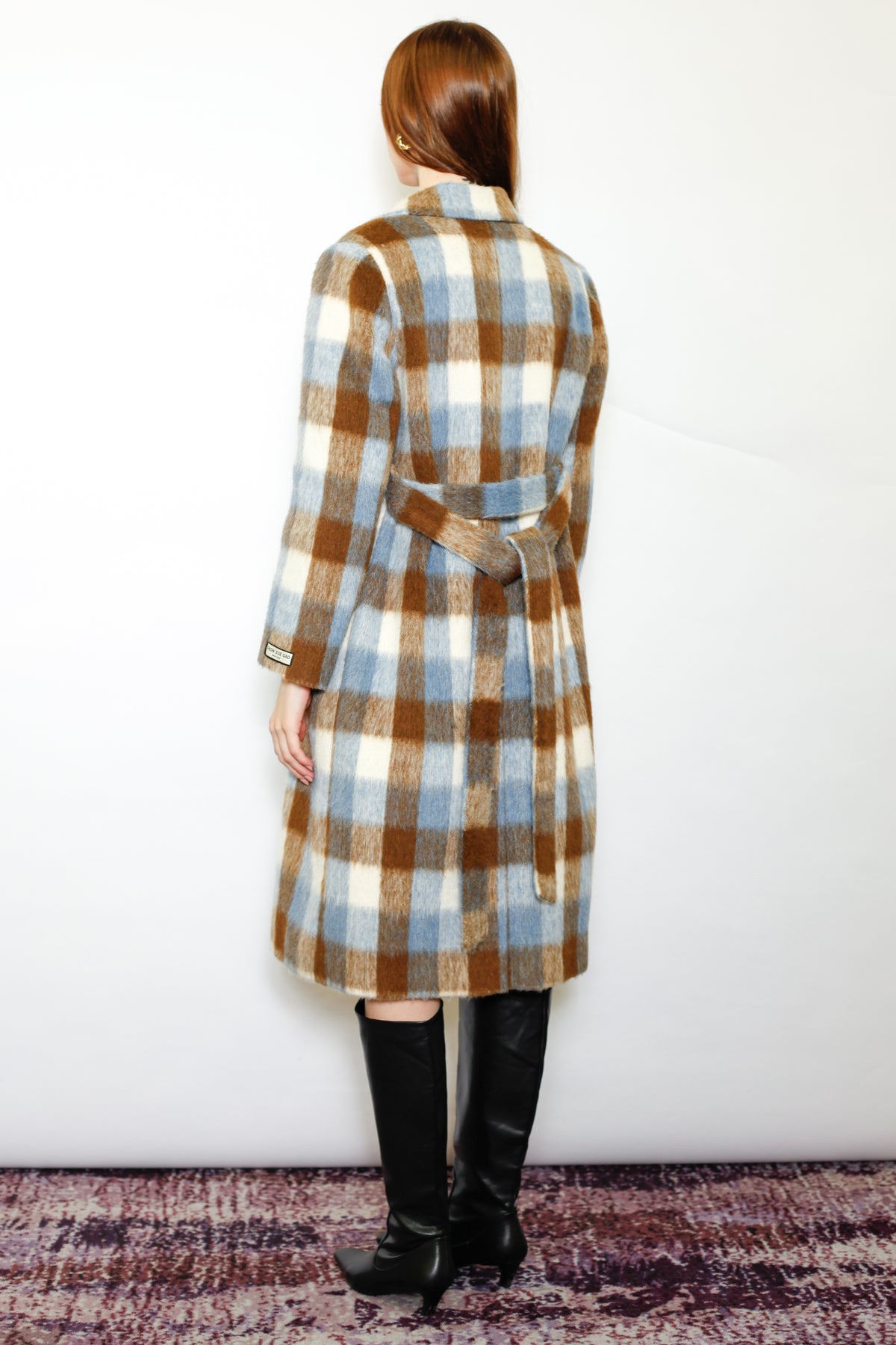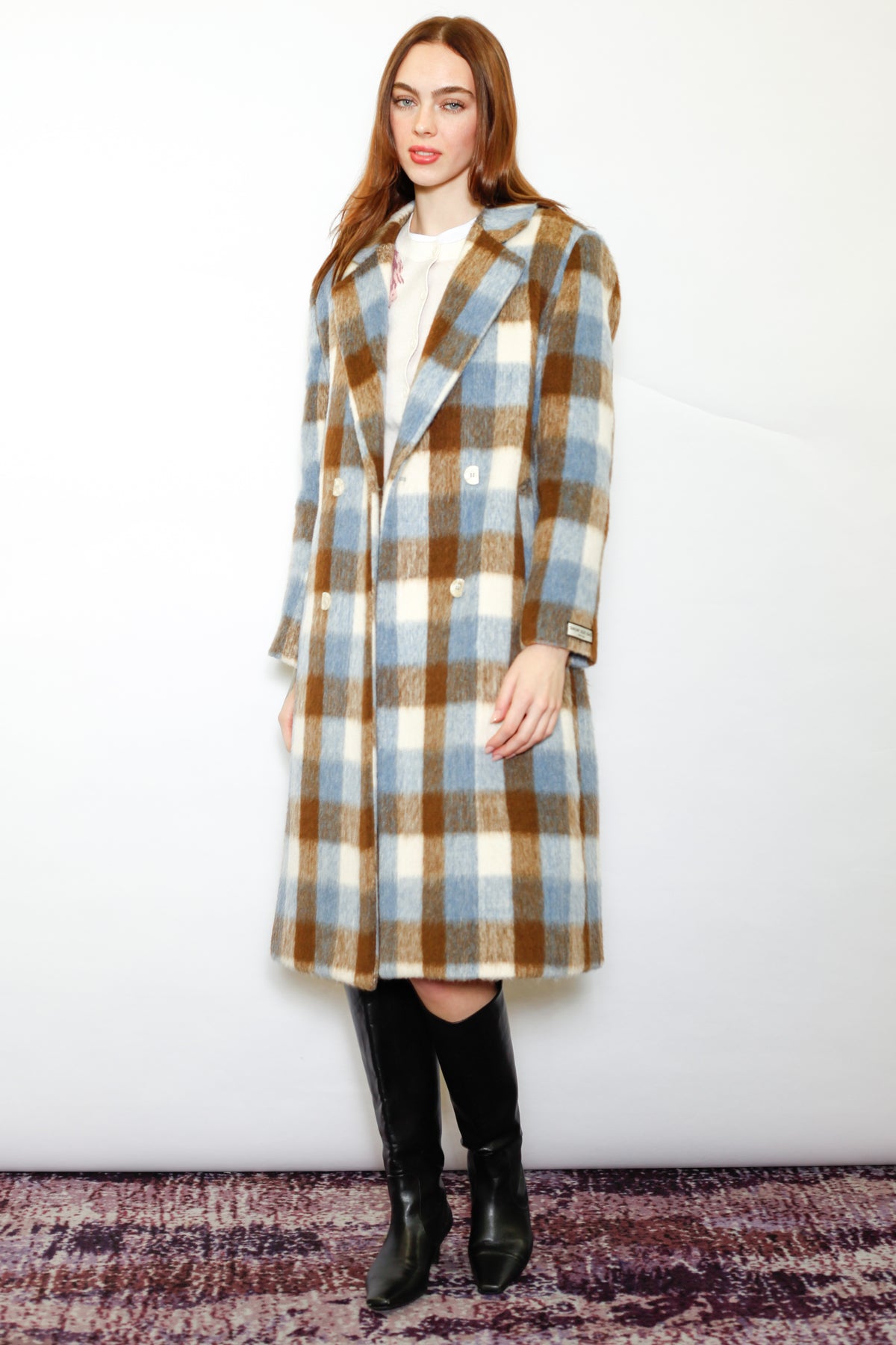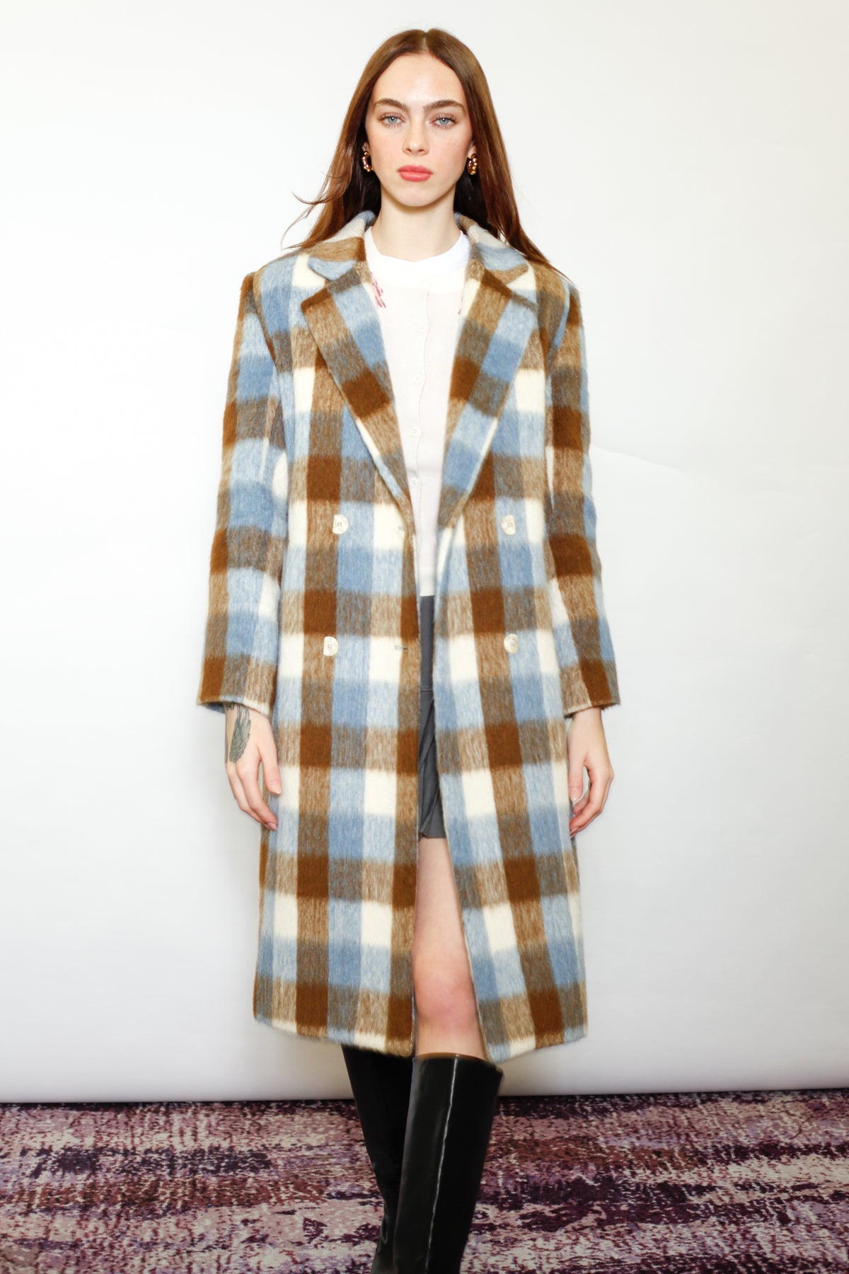 The Heavy Wool Blue & Brown Plaid Coat is a double-breasted favorite with a soft blue and warm brown plaid design. Featuring a chic button closure, classic notch lapels, and functional side pockets, this fully lined coat offers ultimate comfort and timeless style. Perfect for layering, it pairs effortlessly with boots or casual wear, making it a must-have for cooler seasons.