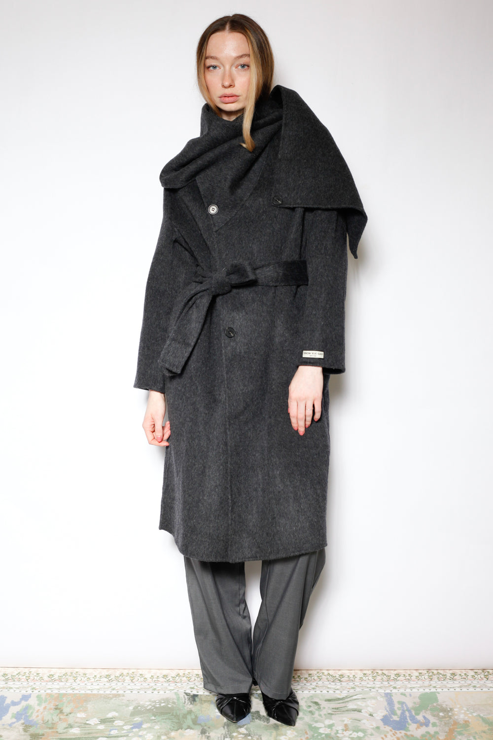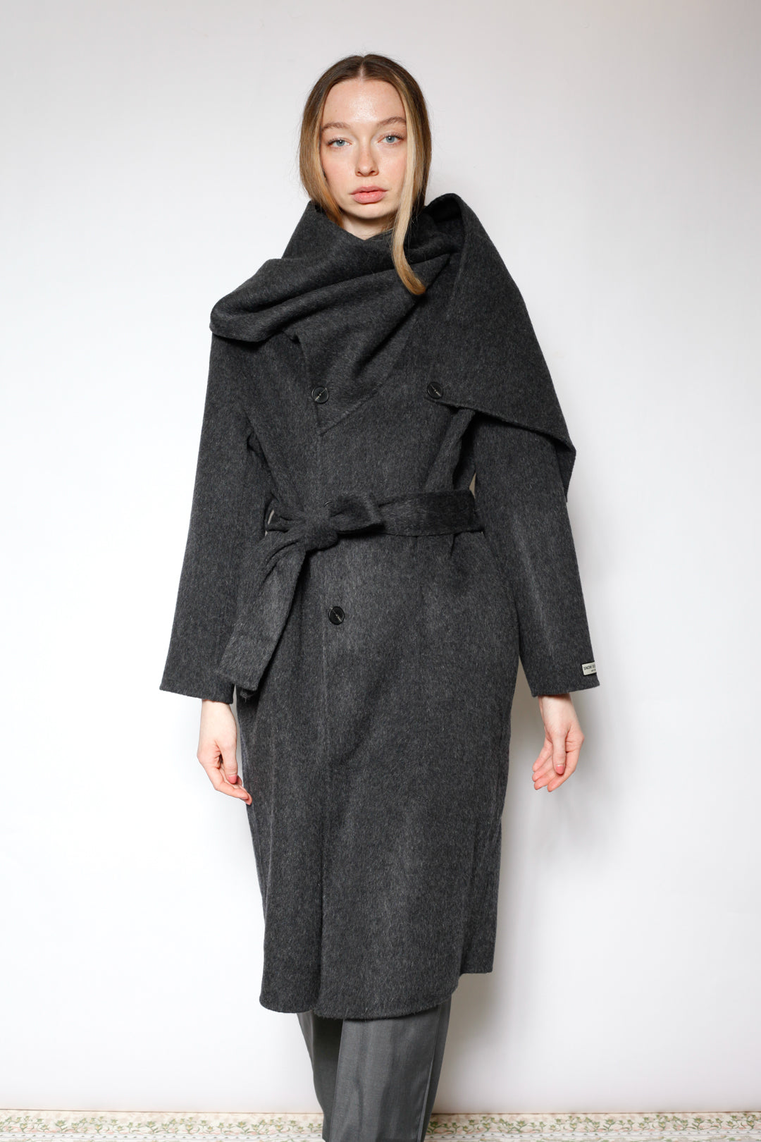 100% Merino Wool Gray Scarf Coat