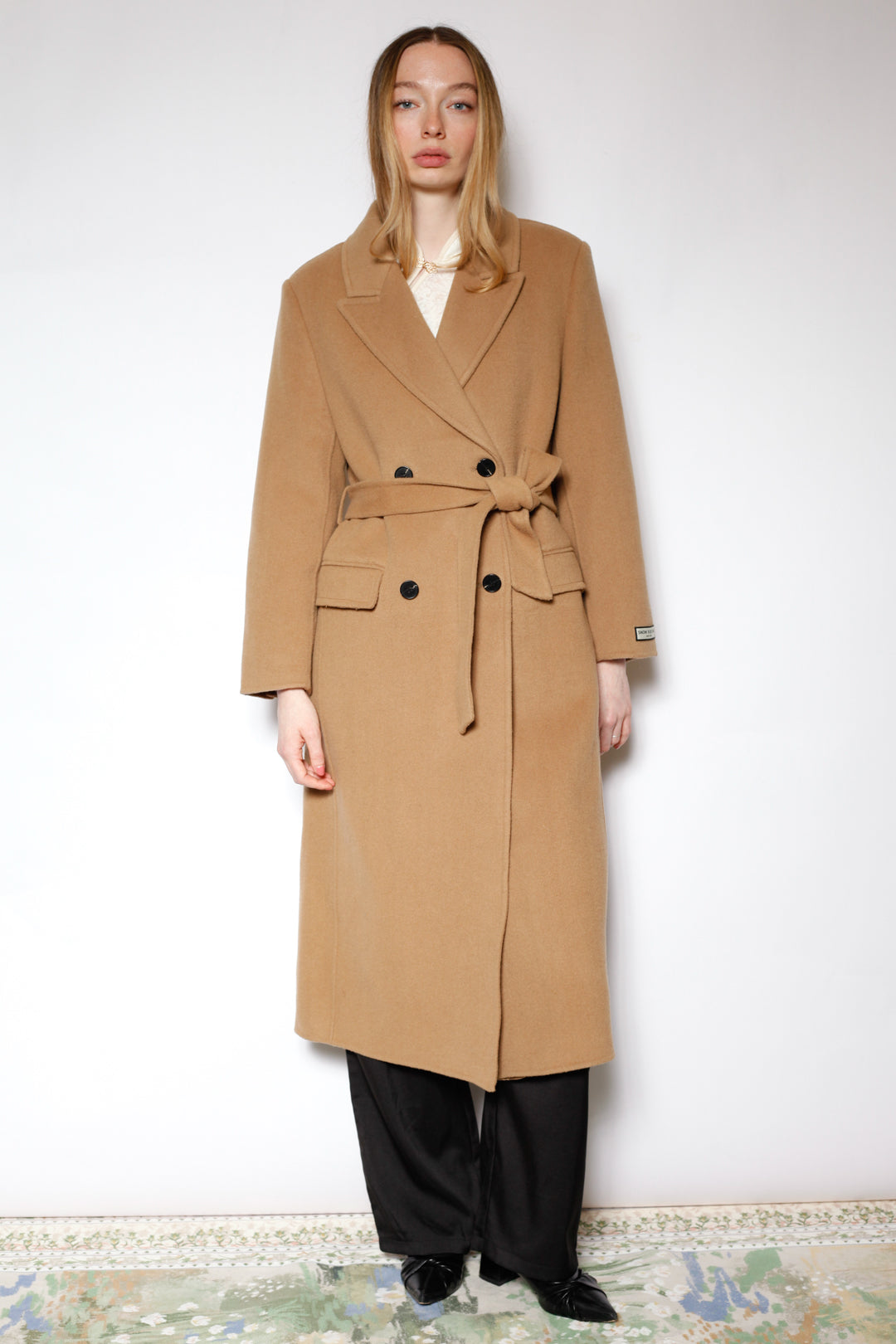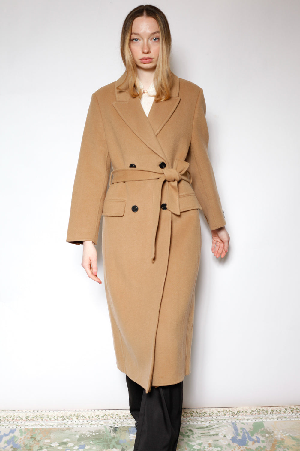 100% Merino Wool Camel Tailored Belted Coat