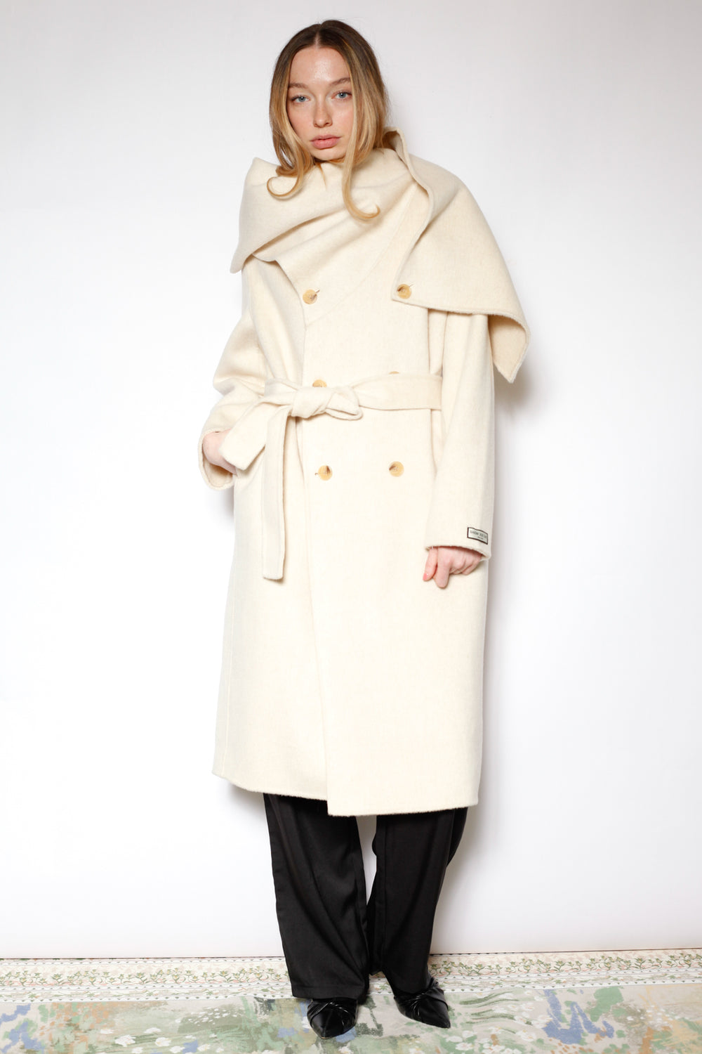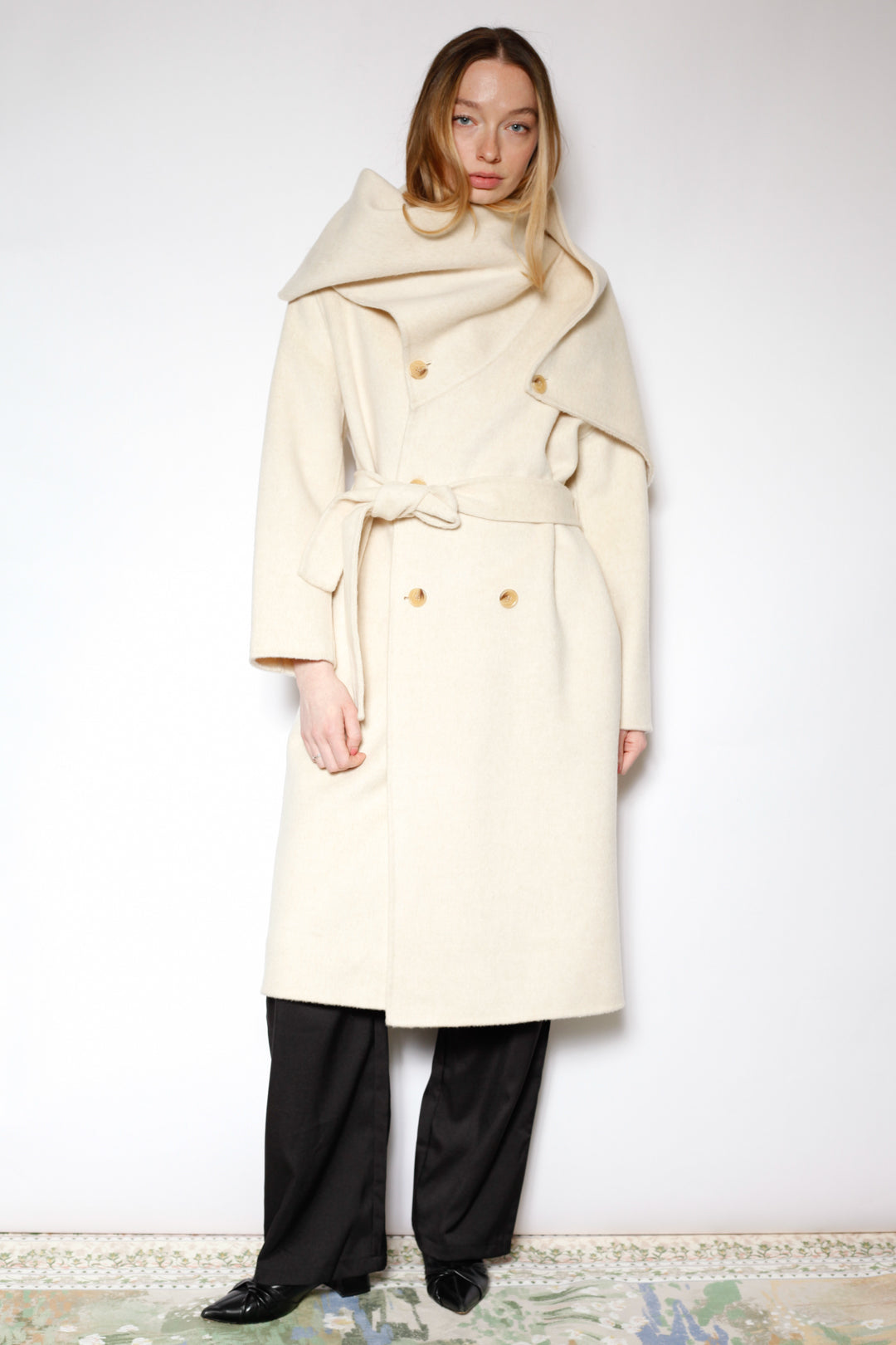 100% Merino Wool Ivory Scarf Coat