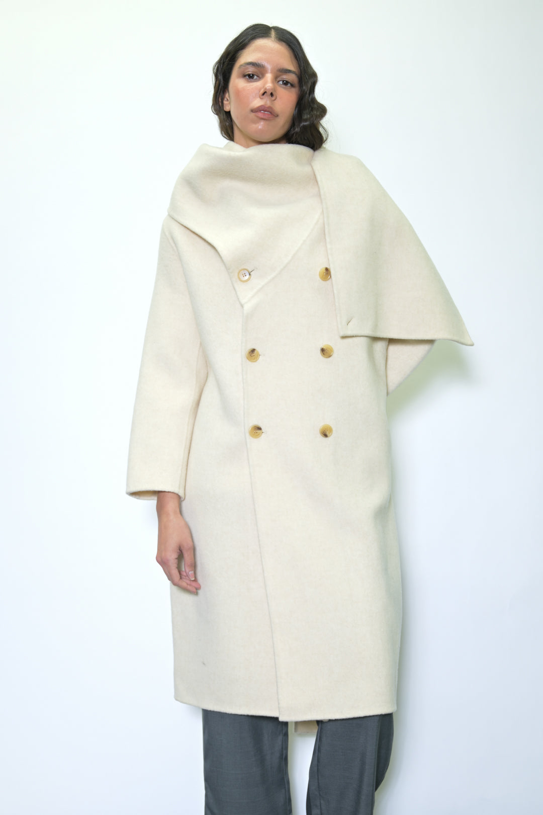 Wrap yourself in luxury with this 100% merino wool scarf coat in timeless ivory. Crafted from premium merino wool, it delivers exceptional warmth without bulk, making it the perfect layering piece for fall and winter. The versatile off-white hue complements any wardrobe, effortlessly transitioning from casual to sophisticated looks. Drape it with a generous wrap and wear it as a coat for an elegant, cozy solution to chilly days. Experience the natural breathability and softness of merino wool while staying beautifully warm all season long.