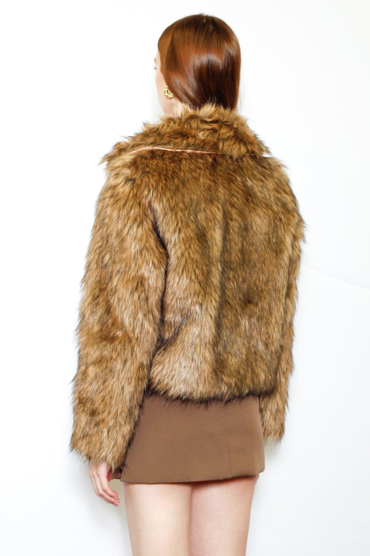 An elevated take on vintage glamour, this statement jacket blends rich earthy tones with luxe texture. The natural black-brown tones evoke a timeless fall aesthetic, while its clean silhouette makes it endlessly wearable.